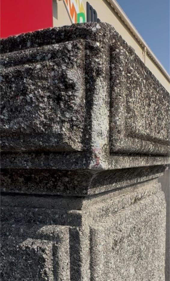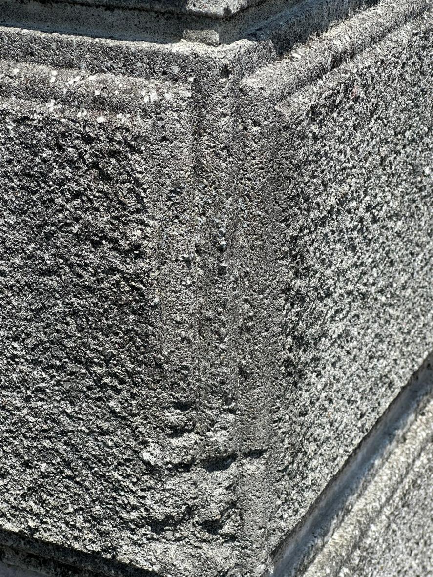 お車が門柱に接触してしまい、表面が削れて傷ついてしまったとのことでした。