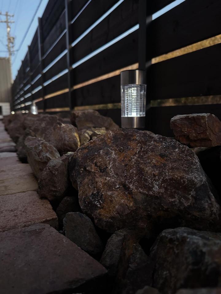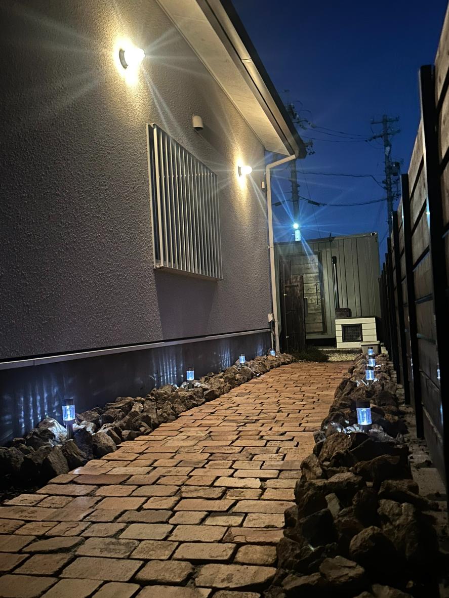 ソーラーライトもやさしく玄関を照らしてくれるので、夜の出入りも安心です。