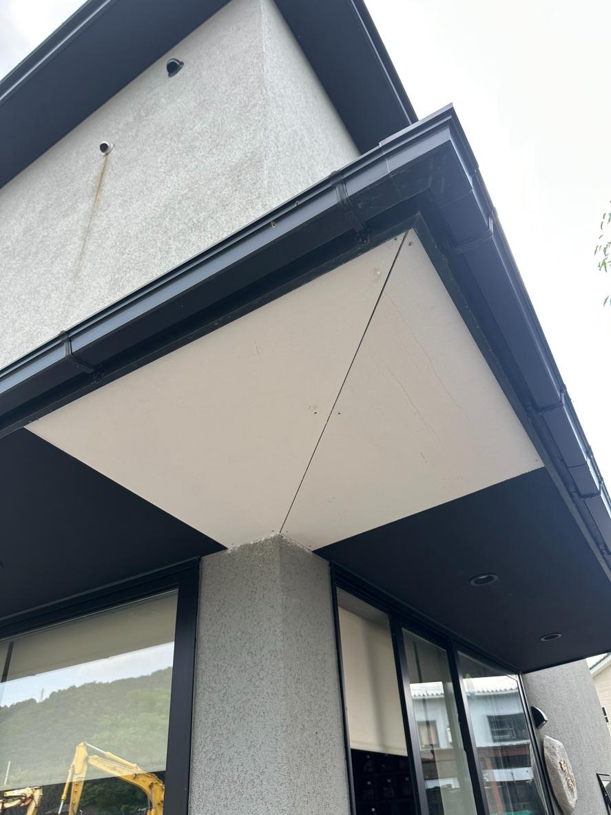 対応として、まずは腐食してしまった軒天を撤去し、新しい軒天材へ貼り替えを行い、その後塗装で仕上げました。