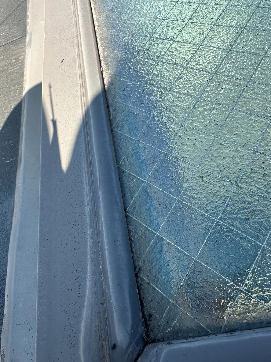 現地を確認したところ、天窓のガラスと枠の間のシーリングが劣化しており、そこから雨水が侵入している状態でした。