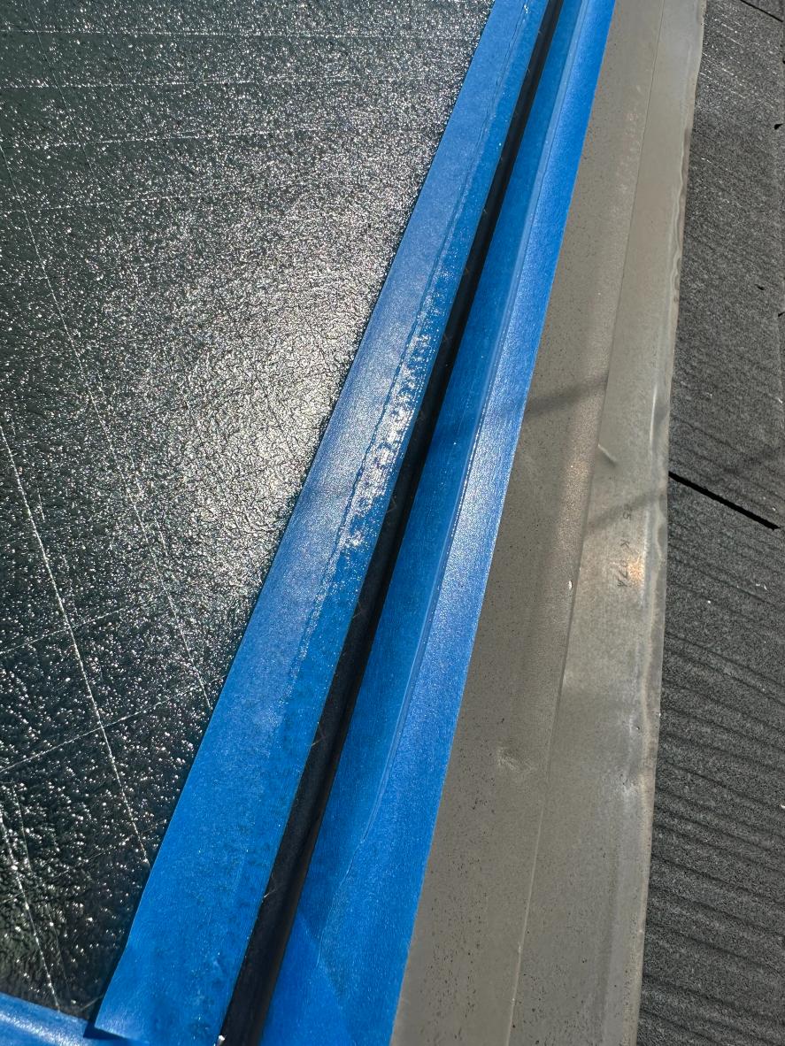 隙間部分と、枠の板金のジョイント部分をしっかりとシーリング施工することで、防水処理を行いました。